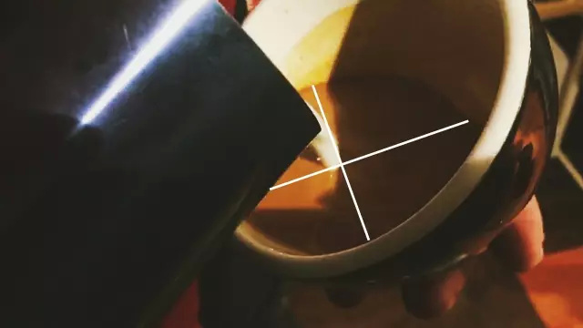 1.傾斜咖啡杯,對準濃縮咖啡液面中央