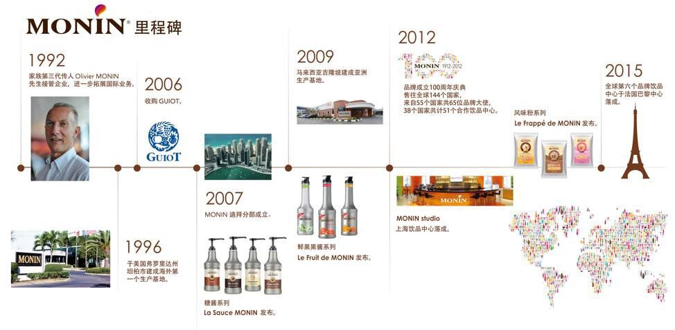 與父親Paul一樣,Olivier繼續大力投資于購買先進的生產設施,迅速幫助其新產品發展達到全球化水準。他充分利用了140多個國家不同口味的偏好性和特殊性,發展出超過140種的風味產品,讓MONIN發展成為現今市場上的領導者,例如檸檬姜蜜、桃花和烤扁桃仁風味,都恰恰證明了MONIN品牌在風味的創新上如饑似渴的態度。