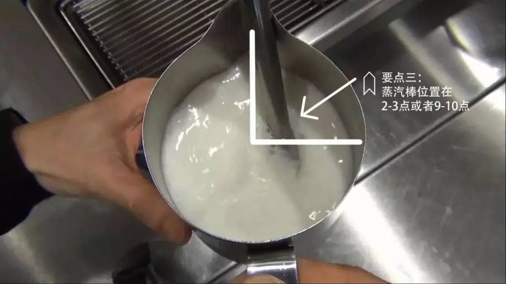 視頻中我們都能看到,其實(shí)許多人都習(xí)慣將蒸汽棒擺在奶缸的2-3點(diǎn)或者9-10點(diǎn)的方向(以缸嘴作為12點(diǎn)方向?yàn)榍疤幔蚴鞘裁茨兀?/span>