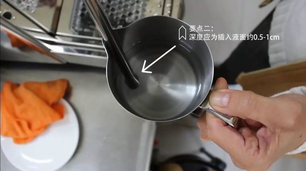 同樣條件下,蒸汽棒擺放的越深,牛奶越難形成小漩渦,而擺放得越淺,則更容易形成小漩渦。
