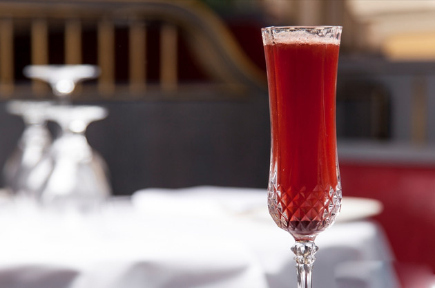 4. 調(diào)配雞尾酒:將起泡酒注入一個細(xì)長型香檳杯中,再倒入25毫升的香料熱紅酒汁,然后按口味加入檸檬汁進(jìn)行調(diào)和,即可飲用。