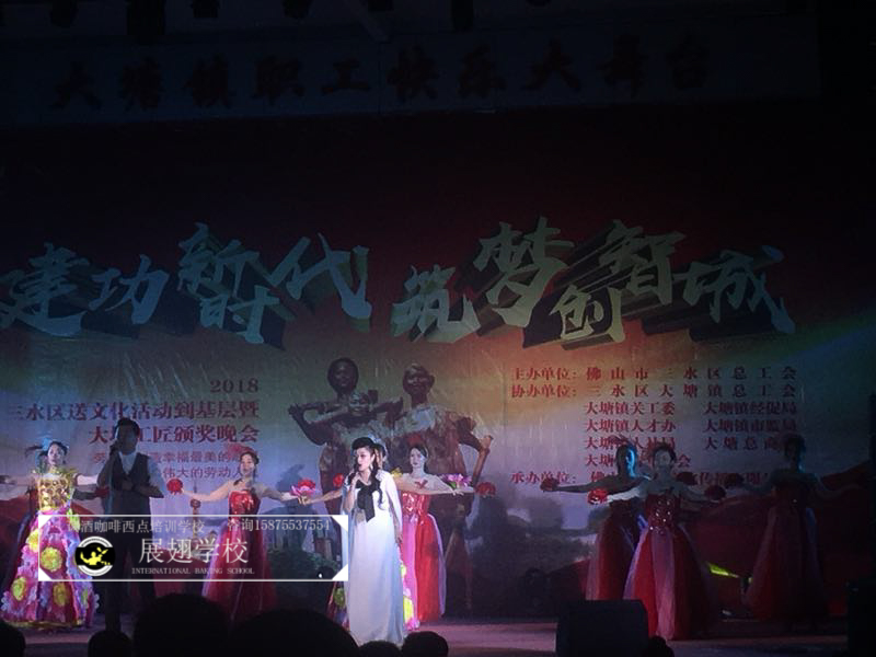 2018年5月5日,佛山展翅調酒咖啡西點培訓學校的調酒師參加了2018三水區送文化活動到基層暨大塘工匠頒獎晚會,并作為表演嘉賓為現場獻上了一場精彩的花式調酒表演。勞動是創造幸福最美的歌謠,向偉大的勞動人民致敬。接下來,讓我們一起看看當晚的現場表演吧。