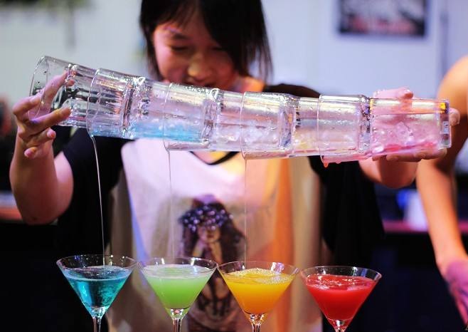 調酒需要力度,你看到一個女生預熱準備掄起酒杯酒瓶子開始表演,你會驚訝!看看對方靚麗高雅如明星,帶笑面容流出親和感,你跟外國朋友聊天,突然聽到調酒的女生既會多種中國方言,飚起英語來也讓人拍手叫絕!女調酒師好像把傳統(tǒng)女性性格的溫婉柔麗和男性的陽剛俊秀結合起來,火候夠者,可將其大致一個完美的平衡。