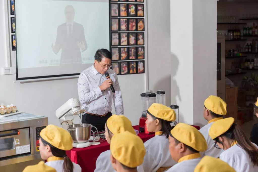 繼而,德瑪仕首席講師宋彪先生發表了以“賦能.共創”為主題的講話。宋彪先生重點講述了產品賦能、服務賦能、VIP賦能三大賦能涵蓋的服務類型及其優越性。并表示,展翅學員在德瑪仕購買品質優勝的餐飲設備或工具享有VIP服務,德瑪仕還為開店創業的學員免費提供裝修設計方案,創業指導,就業機會等多種服務。