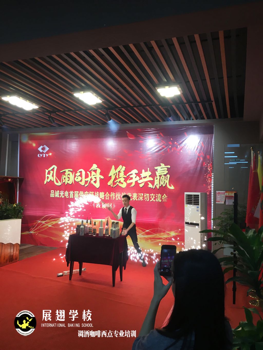 <佛山展翅調(diào)酒咖啡西點(diǎn)培訓(xùn)學(xué)校>調(diào)酒師朱歡洪&謝克朗受邀出席中山品誠光電交談會,并擔(dān)任活動現(xiàn)場花式調(diào)酒演出嘉賓。如果你想成為一名優(yōu)秀的花式調(diào)酒師,要不斷的實(shí)踐、學(xué)習(xí)、讓自己擁有更豐富的技能知識http://m.xunxwg.cn