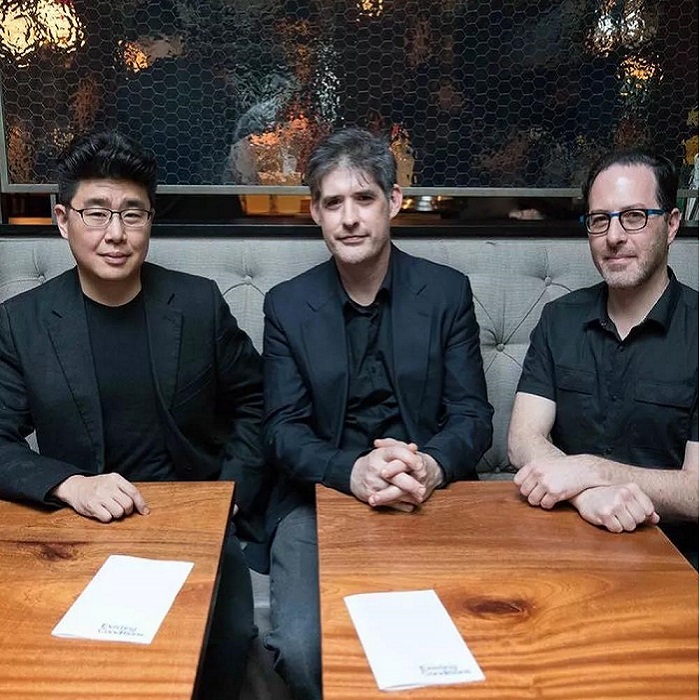 EC的三位創(chuàng)始人是紐約乃至全美最知名的酒吧行家,戴夫阿諾德Dave Arnold(上圖中)曾經(jīng)是紐約Booker And Dax的創(chuàng)始人,并且他還在法國烹飪學院學習過料理,因此很早就把旋轉(zhuǎn)蒸餾器,離心機和液氮等玩意運用到雞尾酒中。亞裔調(diào)酒師李Don Lee(上圖左)更是雞尾酒界的傳奇人物,畢業(yè)于哥倫比亞大學曾經(jīng)就職于計算機行業(yè),但因為熱愛雞尾酒的緣故踏入這一行,先后在紐約知名酒吧Pegu Club,Milk & Honey,Death & Co工作過,之后更是幫助Jim Meehan創(chuàng)立了紐約另外一間傳奇酒吧PDT,2007年的時候李在PDT首次發(fā)明了脂洗Fast Wash技術(shù),把波本威士忌浸泡培根油之后再進行過濾,從而能夠調(diào)出一杯帶有培根味的Old Fashioned。(順便提一句,兩分鐘內(nèi)調(diào)一杯Ramos Gin Fizz的手法也是他發(fā)現(xiàn)的)。另外一位創(chuàng)始人格雷戈Greg Boehm(上圖右)則是酒吧用具供應商Cocktail Kingdom的擁有者,三位無論從資歷還是能力上來說都是業(yè)內(nèi)大咖級人物。