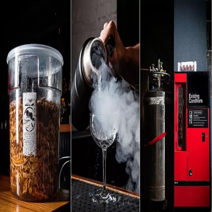 EC的許多雞尾酒都會使用訂制的設(shè)備進行充氣,然而充入的并不是碳酸氣,而是氮氣。因為根據(jù)戴夫和李的研究,氮氣會讓雞尾酒的氣泡更為細膩并且還能帶來一絲甜味。