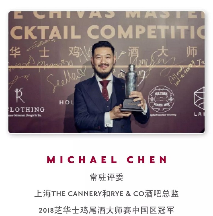 每場資格賽均由3位評委進行評判:中國區品牌大使Craig Swindell、2018芝華士雞尾酒大師賽中國區冠軍Michael Chen加一位區域賽評委。