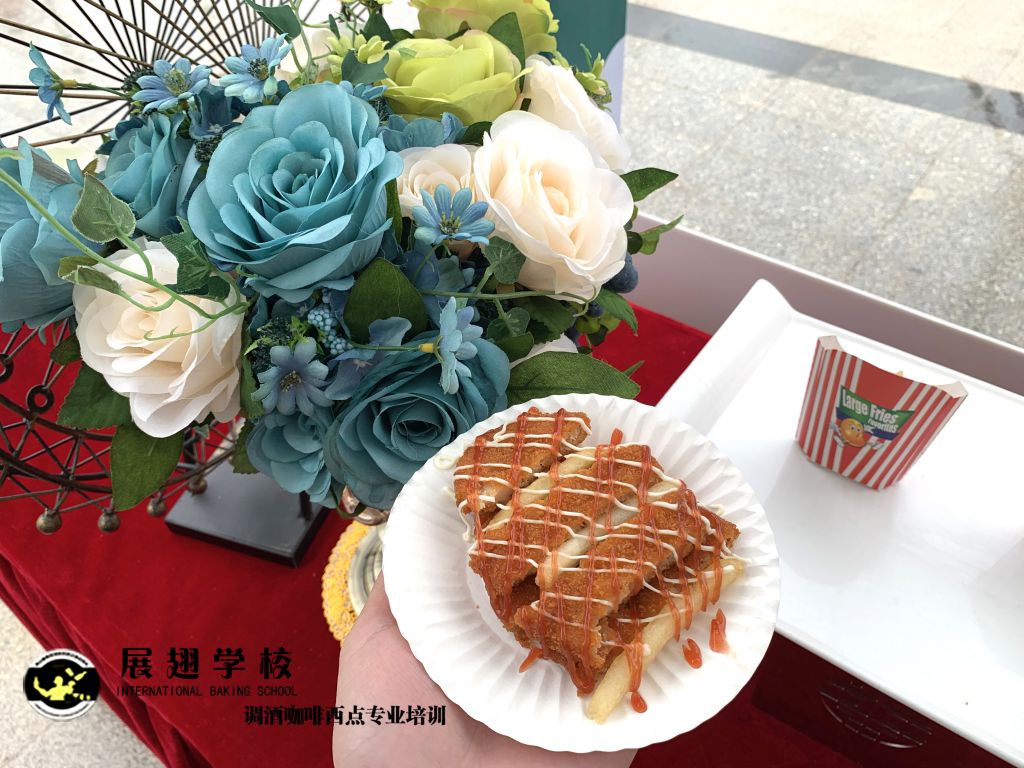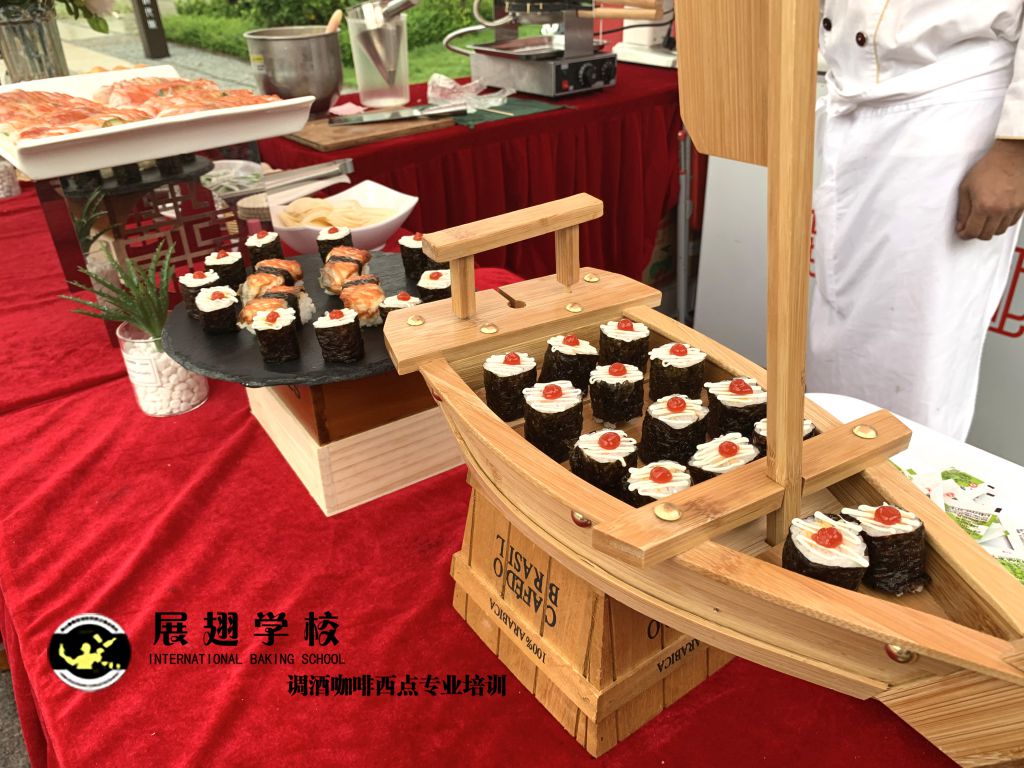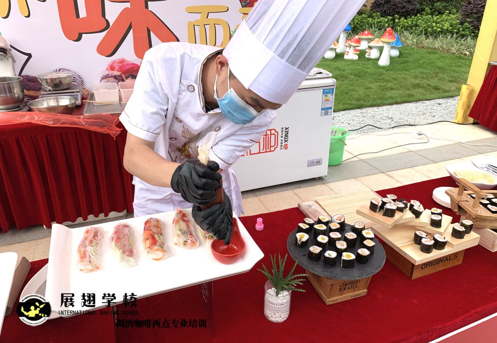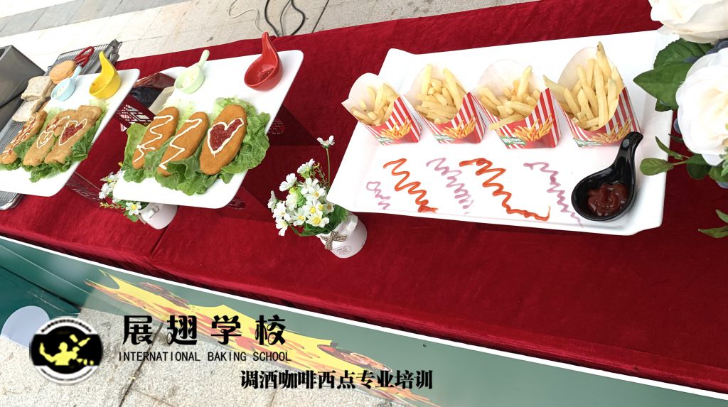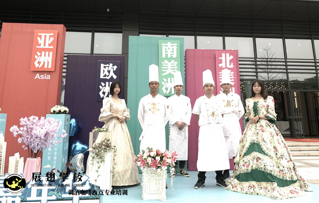 光大地產-云浮景湖時代城 五一異國風情嘉年華展翅調酒咖啡西點培訓學校學員糕點戶外實踐,這樣可以檢驗學員這段時間以來的學習成果,還能讓學員親自體驗下西點服務行業的工作,還能提升自己的技術和能力。