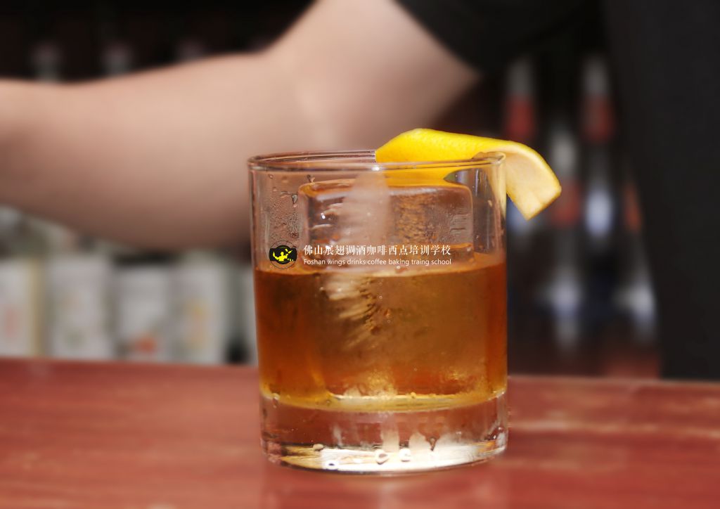 冰鎮搜攪拌杯中stir,濾入加有大方冰的古典杯中,滴入2滴 orange bitter,橙皮噴香,擦杯沿,加入杯中。Stir過程化水不宜過多,化水太多會稀釋香味,影響酒體平衡,一般在酒體充分混合,降溫后即可出品。
