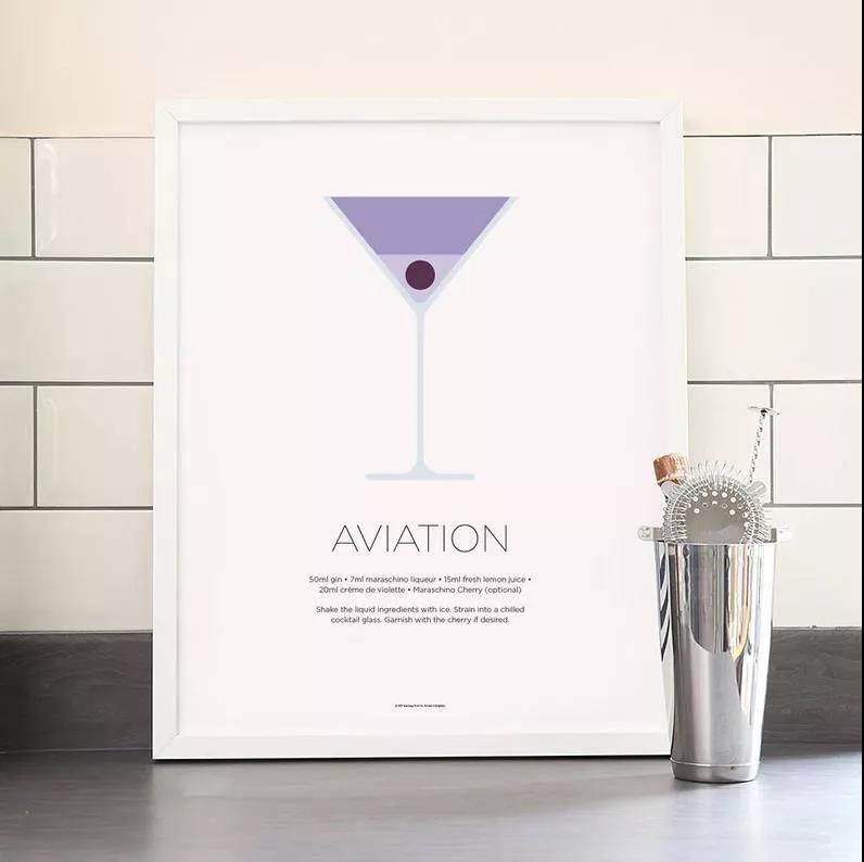 到了1960年代,美國本土已經買不到紫羅蘭酒了。也因此禁酒令結束后,新一代的調酒師就這么開始習慣,并認為Aviation就是金酒+黑櫻桃酒+檸檬汁的組合,Harry Craddock的酒譜就這麼變成標準。那么,Aviation是什麼意思呢?這杯酒誕生于二十世紀初,萊特兄弟剛發明飛機,世界各地都跟著投入研究,也開啟了航空史的黃金時期,當時的人們為了能飛上天際而努力著,或許Aviation就是在向這樣的精神致意吧!調酒師們是否也曾有這樣的疑問:為什么這杯酒會叫做Aviation呢?或許是Hugo Ensslin在天上有保庇,數十年過后,當紫羅蘭酒重新滴入Aviation,暈開一抹淡淡的藍色,是不是就很像當時人們向往的天際呢?